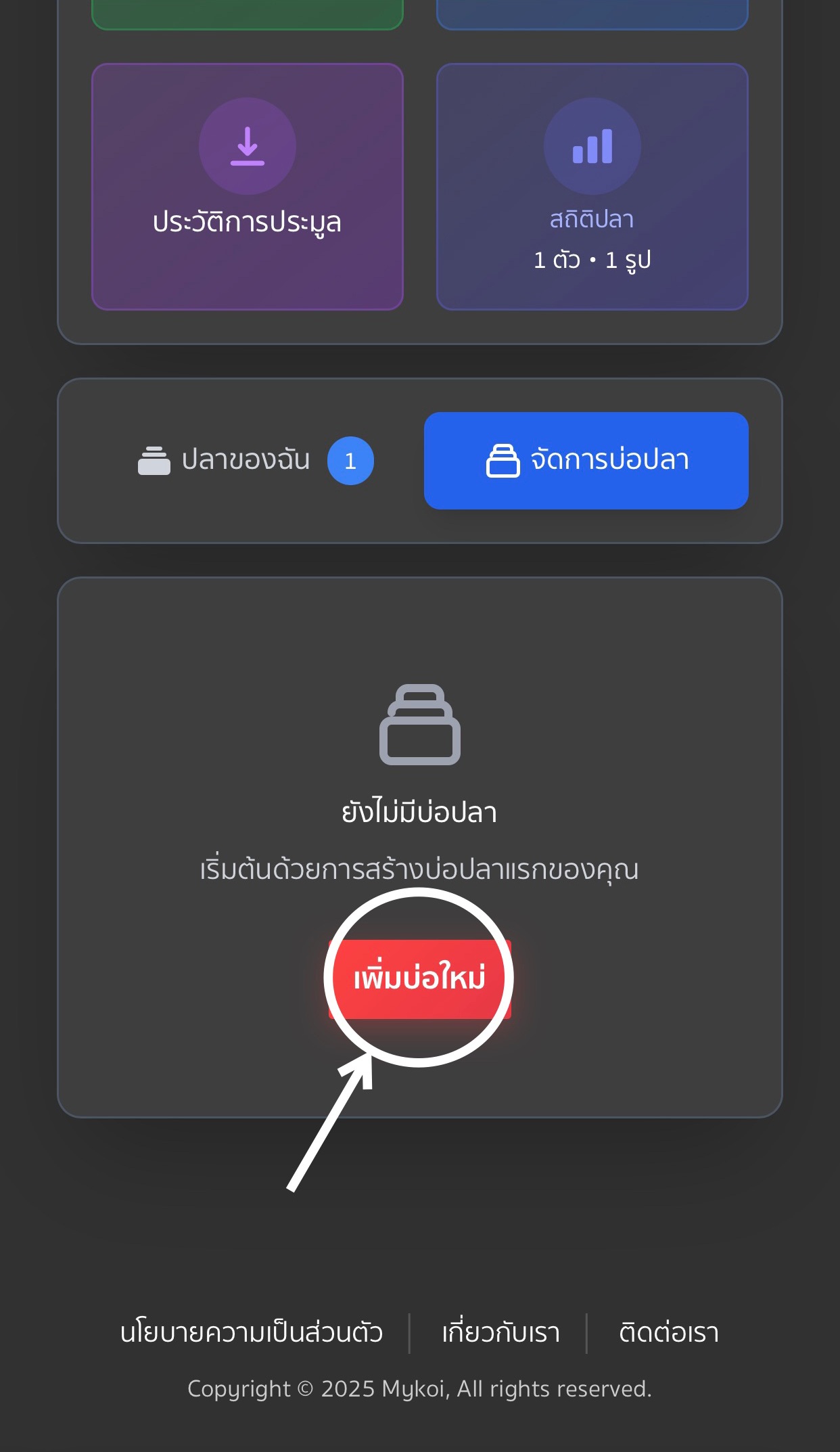 1. กดจัดการบ่อปลา แล้วกดเพิ่มบ่อใหม่