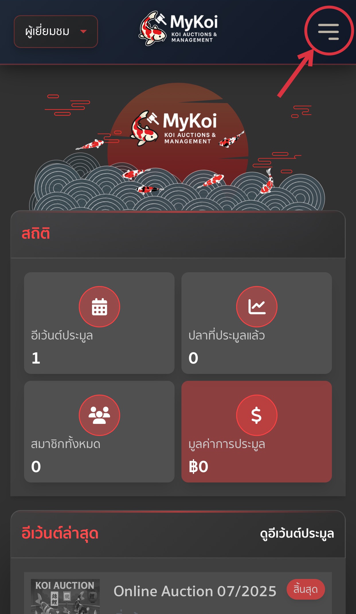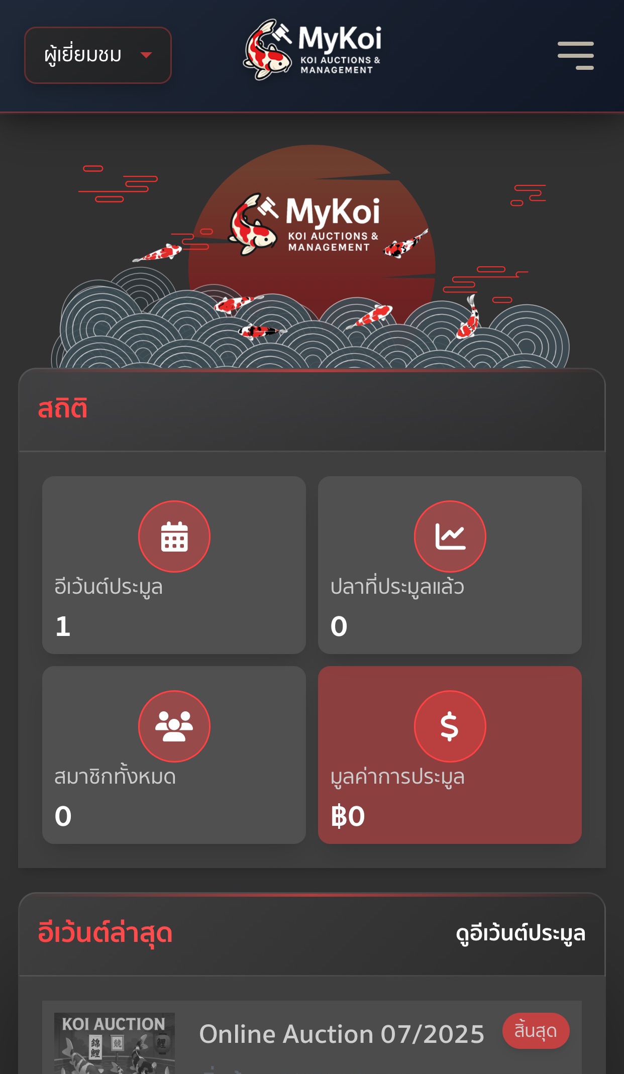 6. ระบบจะพาไปยังหน้าแดชบอร์ด เป็นอันเสร็จสิ้น สามารถใช้งานเว็บไซต์เพื่อจัดการและติดตามปลาคาร์ปของคุณได้เลย