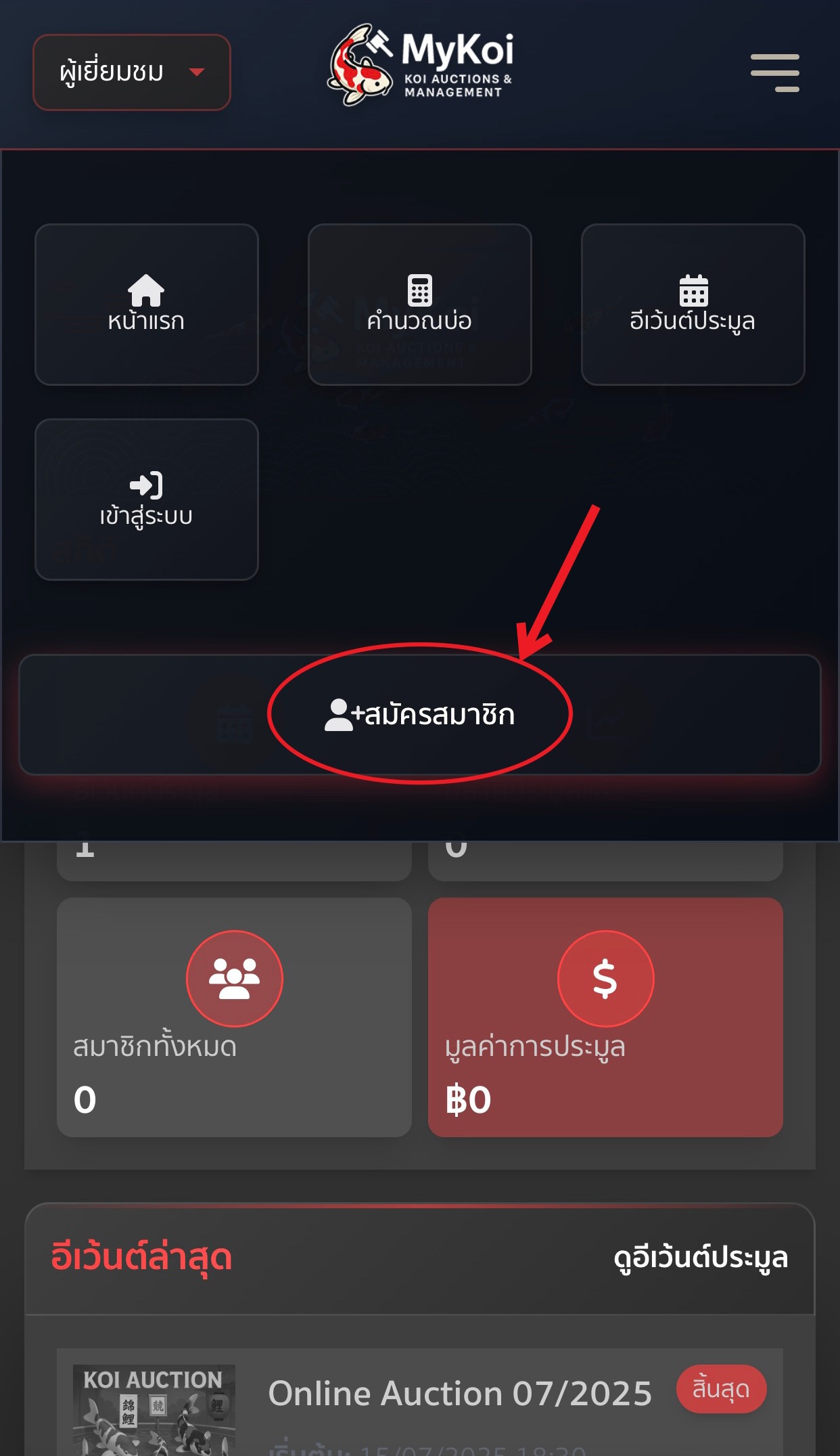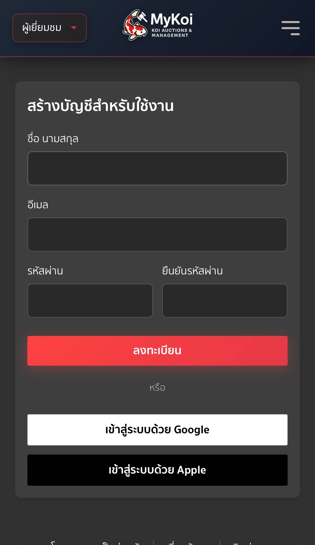 สำหรับใครที่อยากใช้งาน MyKoi แต่ไม่รู้สมัครอย่างไร ในวันนี้เราจะมาบอกขั้นตอนการสมัคร MyKoi แบบง่าย ๆ มีเพียงไม่กี่ขั้นตอน ก็พร้อมใช้งานได้เลยแบบไม่สะดุด แค่เพียงมีมือถือและอินเตอร์เน็ตเท่านั้น ก็จะทำให้คุณสามารถประมูลปลาและจัดการปลาคาร์ปได้อย่างเป็นระบบ ไม่ว่าจะเป็นการบันทึกรายละเอียดของปลา บันทึกการเติบโต ใบรับรอง จัดการบ่อปลา และบันทึกการดูแล ทั้งยังสามารถดูสถิติและประวัติบันทึกย้อนหลังได้อีกด้วย รวมถึงยังมีโปรแกรมคำนวณปริมาตรน้ำในบ่อและการคำนวณเกลือ ซึ่งเป็นประโยชน์ต่อผู้เลี้ยงปลาคาร์ป สามารถติดตามการดูแลปลาและบ่อปลาคาร์ปได้ง่ายขึ้น ไปดูกันว่ามีขั้นตอนการสมัครอย่างไรบ้าง